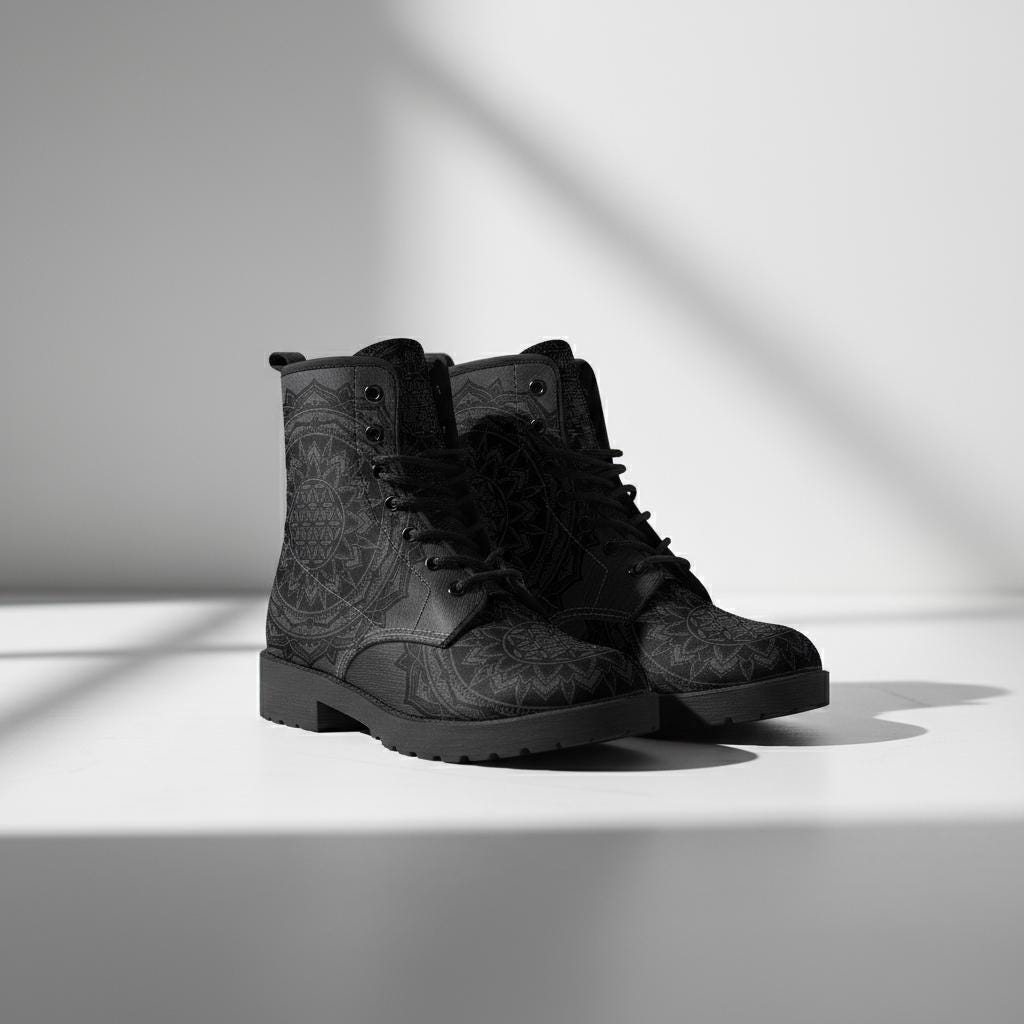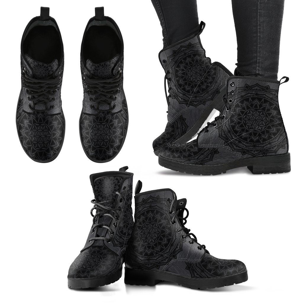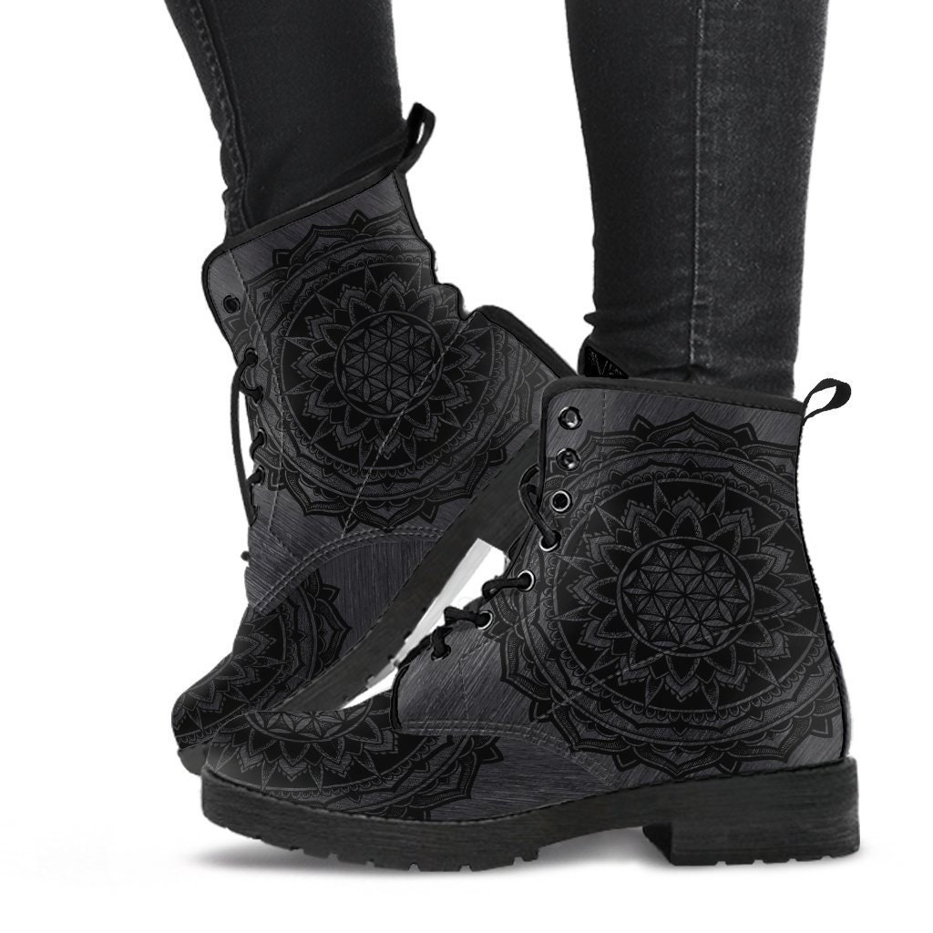 Flower Of Life Womens Boots, Vegan Leather Boots for Women Grey Boots For Men, Combat Style Gift For Women Unique Design.