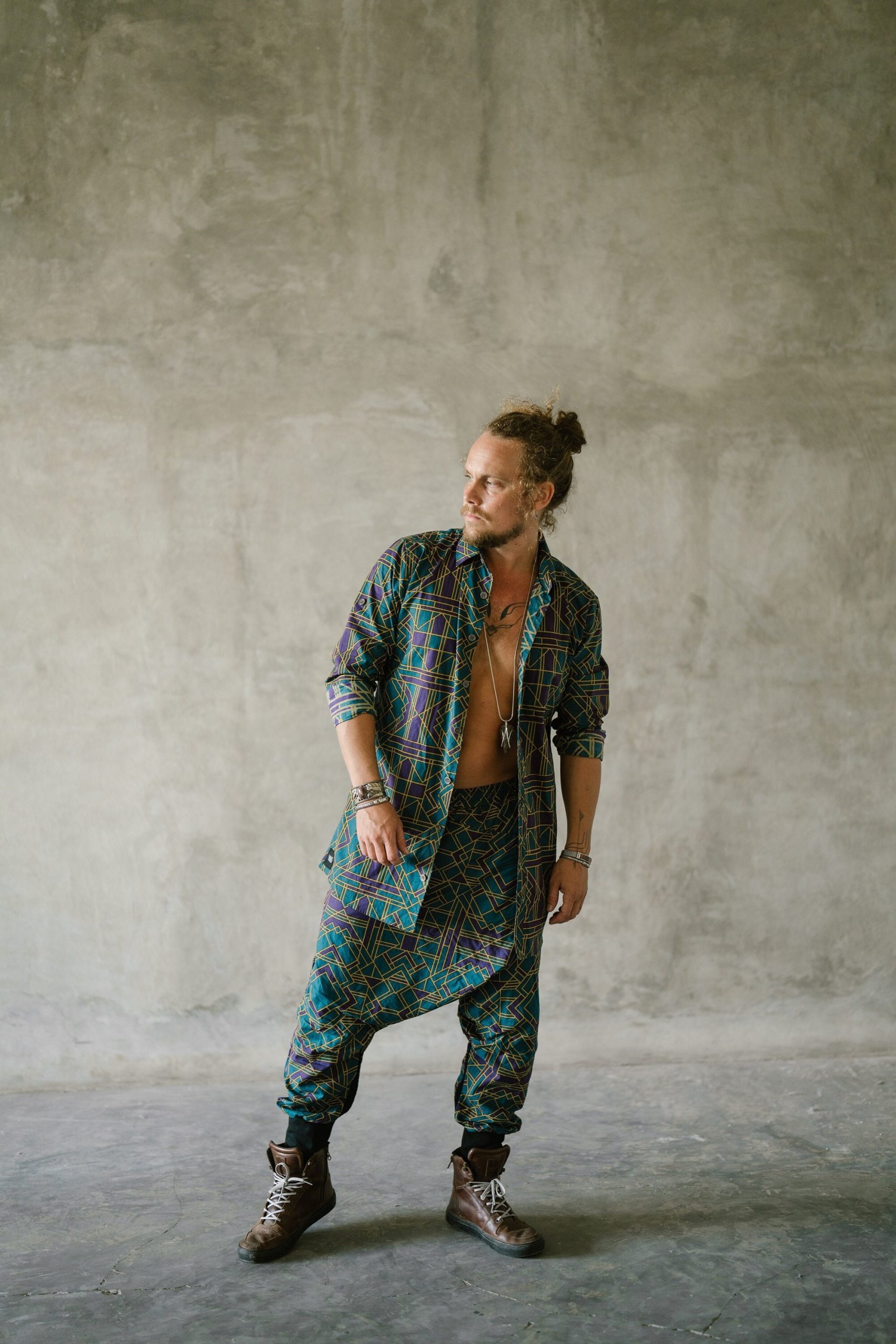 Harem Pants Men, Rave Outfit Men, Boho Clothes, Drop Crotch Pants, Festival wear, Sacred geometry clothing