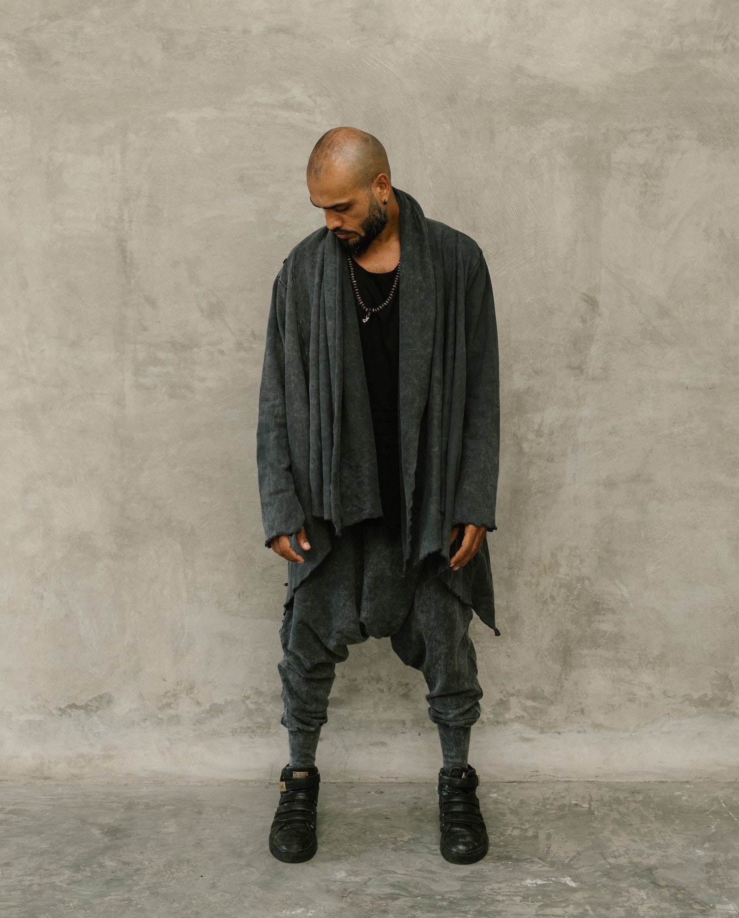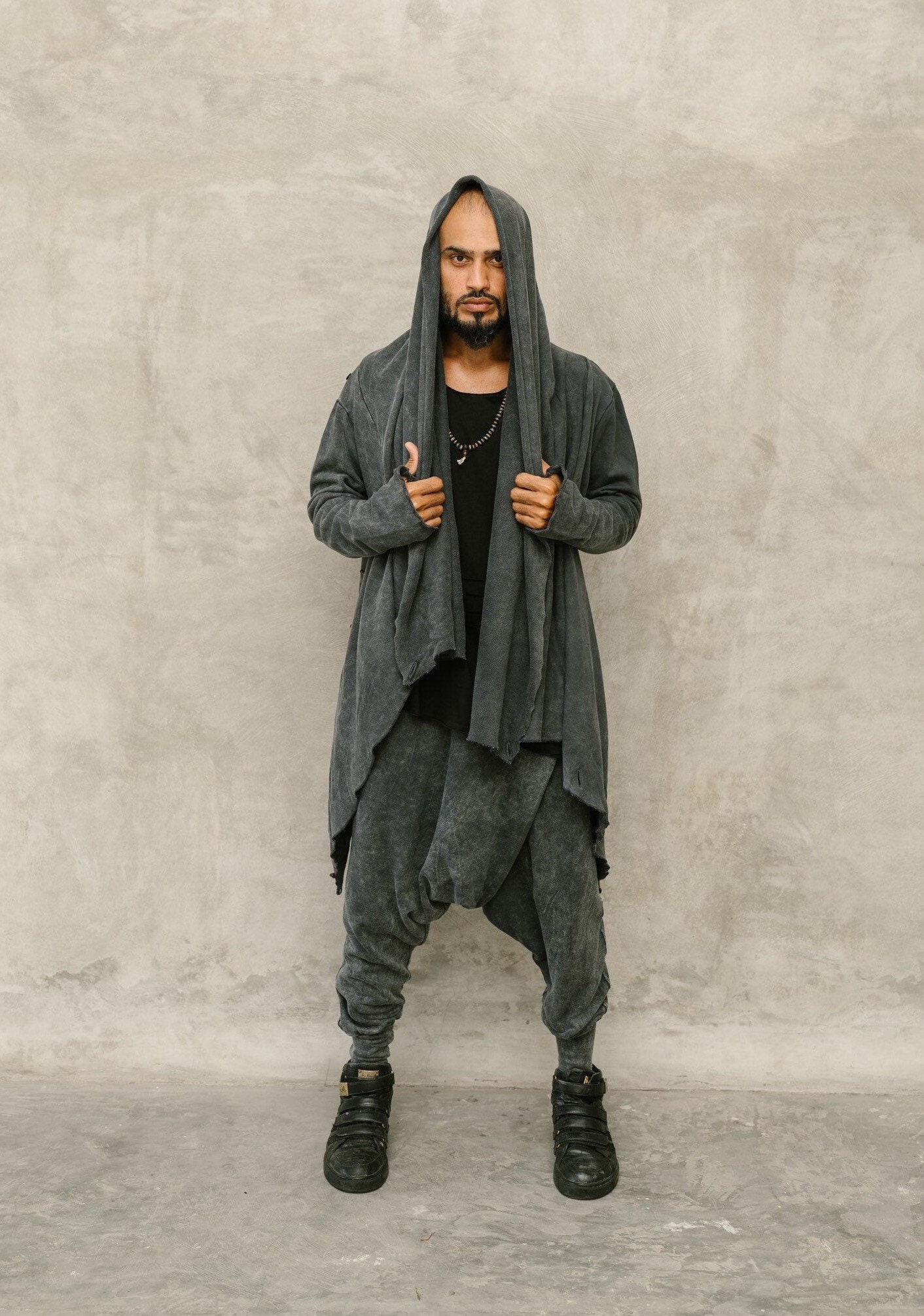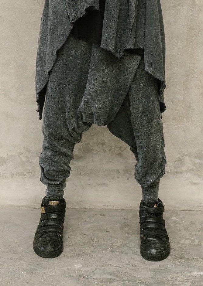 Stonewashed Grey Ninja Pants, Samurai Pants, Black Harem Pants, Shaman Clothing